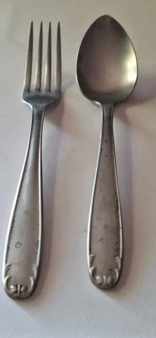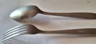 Set de cubiertos de la marca Gallo. - Cuchara y tenedor. - Fabricados en alpaca.