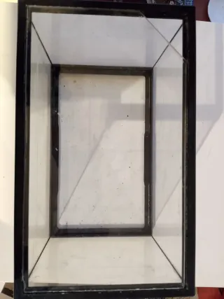 Pecera o terrario de cristal con marco negro. - Dimensiones aproximadas: 40x20x25 - Ideal para pequeños animales o plantas.