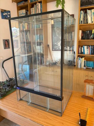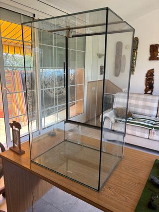 Para reptiles estilo iguana, camaleones, etc. Medidas: 82x42x42 Es grandecito, guardado en el trastero. Un cristal se ha despegado un poco. A recoger en mano en Sant Celoni