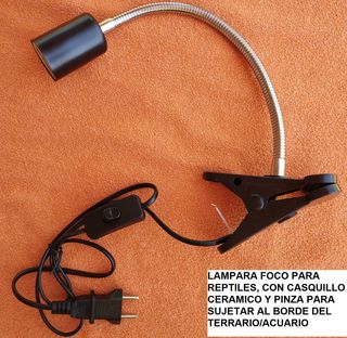 Es una lampara para reptiles con rotacion 360º y casquillo ceramico para todas las bombillas de tipo E27, tanto las de iluminacion como las de calor. Tiene un mecanismo de tornillo (ver foto) para sujetarlo al borde superior del terrario/acuario. diseñado para aguantar altas temperaturas. Envio por Correos toda España incl. Canarias o compralo con la Aplicacion de Wallapop, que protege tu pago y te permite devolver el producto con 100% de rembolso incl. gastos envio. Mira mis 2 anuncios de bombillas (no incluidas) y elige una para esta lampara y te hago un pack para que solo pagues 1 envio.