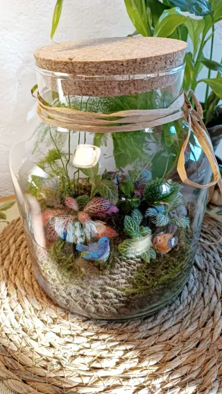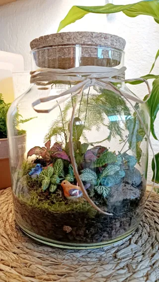 Precios: Foto 1 y 2 : 60 euros Foto 3: 35 euros Foto 4: 26 euros Foto 5: 14-7 euros Foto 6: 24 euros Foto 7: 35 euros Foto 8: 15-19 euros Foto 9: 45 euros Foto 10: 43 euros Los Terrarios autosustentables son pequeños ecosistemas que nos brindan una forma fascinante de observar los ciclos naturales en un espacio pequeño y controlado. Bajo mantenimiento: Solo se riegan cada uno-tres meses. Más terrarios en Instagram: bruixaverda.terrarios