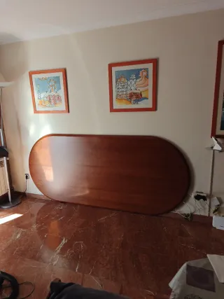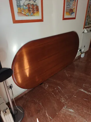 Sobremesa con chapa de cerezo, ideal para dar un toque elegante a tu espacio. - Forma ovalada. - Acabado liso y brillante.