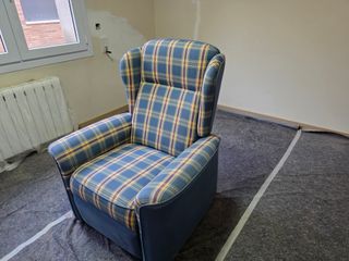 Sillón orejero reclinable tela cuadros