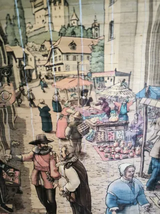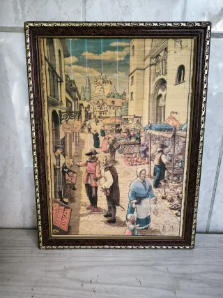 Precioso cuadro vintage con firma. Medidas 35/46 y medio - Marco de madera. - Diseño multicolor.