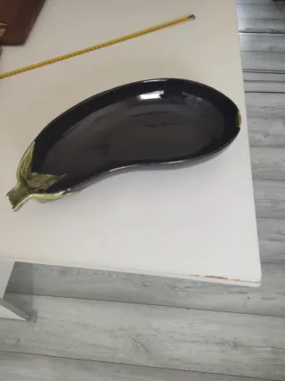Original bandeja decorativa con forma de berenjena. - Pieza única de cerámica. - Color morado vibrante.