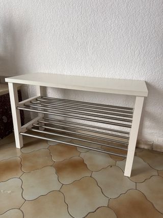 Banco zapatero de IKEA, modelo TJUSIG. Ideal para organizar tus zapatos y tener un asiento extra. - Diseño moderno y funcional. - Estructura robusta.