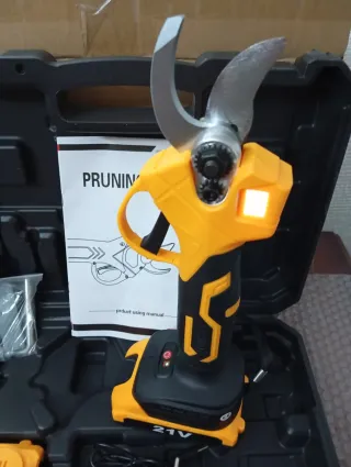 Tijeras de podar eléctricas recargables. Incluye dos baterías y su maletín. - Marca: CAHESLONG - Voltaje: 21V - Capacidad de batería: 3.0 Ah - Incluye dos baterías de litio - Se entrega en su maletín de transporte