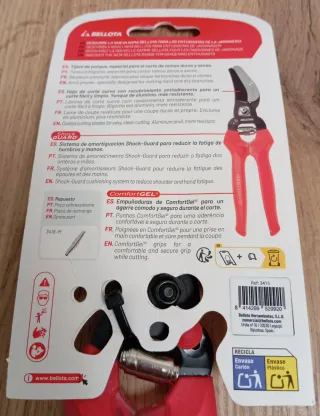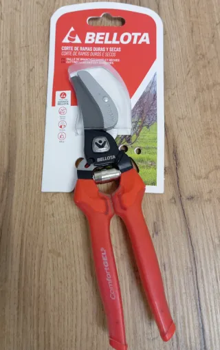 Tijera de podar 1 mano Bellota para ramas duras y secas. - Totalmente nueva, en su embalaje original. - Modelo: ComfortGEL - Corte para ramas de hasta 20 mm. - Peso: 198 gr. - Diseño ergonómico con agarres ComfortGEL. Hago envíos a través de Wallapop, precio no negociable.