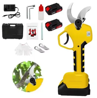Tijeras de poda eléctricas completamente nuevas, sin usar. Ideales para cortar rápido y sin esfuerzo. Hacen cortes limpios y precisos, lo que ayuda a que el árbol no sufra y se recupere mejor. Perfectas para poda de árboles, viñas y jardines. Incluye maletín, 2 baterías de 21v, cargador y accesorios. Producto nuevo, listo para usar. ⭐Envio gratis a toda españa ⭐Somos tienda, por lo tanto todos nuestros productos son completamente nuevos, de buena calidad y revisados antes de la entrega.