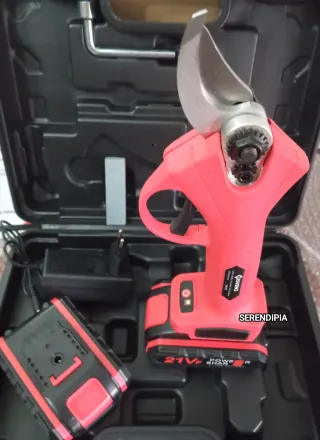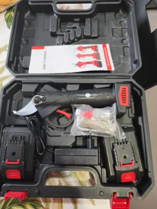 Tijeras de podar eléctricas con batería. - Incluye tijeras, batería y cargador. - Mango ergonómico para mayor comodidad. - Estuche de transporte incluido. Hay que hacerles una revisión