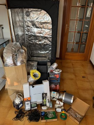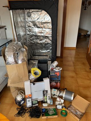 Kit completo cultivo indoor en muy buen estado, listo para usar Incluye • Armario 80x80x160 cm • LED Mars Hydro TS1000 150W • Extractor + filtro carbón activo • Ventilador conducto Blauberg Tubo 100 • 2 ventiladores pinza oscilantes (Cyclone + CE, 20W) • Bandeja drenaje 80x80 Macetas • 18 x 7L • 3 grandes aprox. 13L • 1 extra grande 50L Ventilación • Tubos aluminio e insonorizados • Abrazaderas Control y herramientas • Termohigrómetro digital • Medidor TDS & EC • Temporizadores • Microscopio LED 60x–100x • Tijeras poda Extras • Redes SCROG, poleas • Pipetas, jeringas • Etiquetas, bridas Entrega en mano en Barcelona.