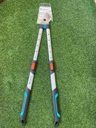Tijeras de podar Gardena TeleCut. - Modelo: 650-900 B. - Mangos ergonómicos con empuñadura suave. - Cuchillas de bypass para cortes limpios. - Longitud: 650-900 mm.