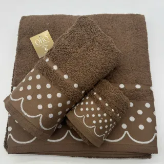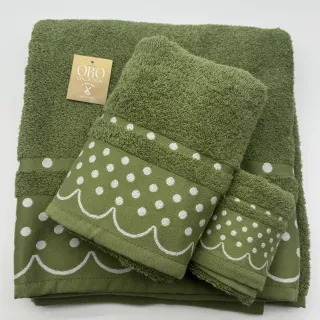 Conjunto compuesto por: 1 toalla de tocador 30 x 50 cm 1toalla de lavabo 50 x 100 cm 1 toalla de ducha grande 100 x 150 cm Fabricadas en Portugal, con tejido 100 % algodón. Toallas conocidas por su tacto muy suave y alta capacidad de absorción, ideales para el uso diario o como regalo. Envios disponibles. (Gran variedad de modelos disponibles en mi perfil)