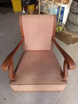 Sillón de tela y madera para restaurar