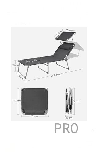 Tumbona Plegable con Toldo y Respaldo Regulables, Tumbona Piscina