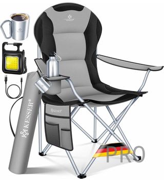 KESSER® Silla de Plegable Camping Acolchada hasta 150 kg, con Apoyabrazos y Portavasos + Bolsa con Respaldo Alto, Silla de Playa, Taburete, Gris/Negro 10