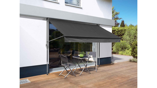 Toldo de exterior en color antracita, con sistema de fijación mediante pinza. Ideal para crear sombra. - Medidas: 300 x 150 cm. - Color: Antracita. - Fijación: Pinza.