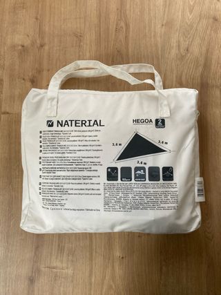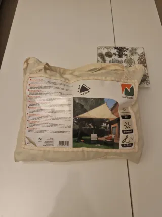 Toldo triangular tipo DELTA marca Naterial en color beige, ideal para exteriores. Sin desperfectos.Ideal balcones,o pergolas para exterior ⛺️🏞🏕 - Dimensiones: 3.6m x 3.6m x 3.6m. - Protección UV del 90%. - Incluye kit de montaje, facil uso y guardado!!!! -Desmontable y lavable.