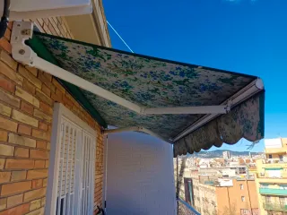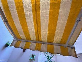 Toldo de tela para proteger del sol y la lluvia. Ideal para ventana del comedor y dos habitaciones. Un año de antigüedad ideal pisos de San ildefono