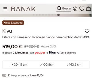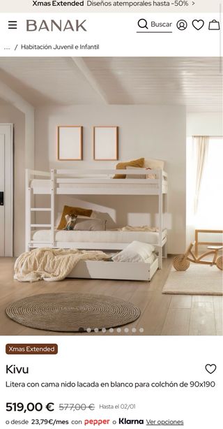 Litera Banak en perfecto estado. - Diseño de madera en blanco natural madera. - Incluye cama nido. - Para colchón de 90x190 cm. - incluye dos colchones como nuevos de calidad.