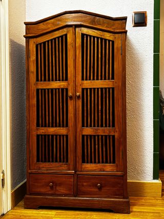 Armario de madera con un diseño clásico estilo provenzal. - Cuatro puertas. - Tiradores discretos. - Base con cajones.