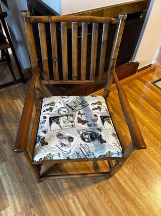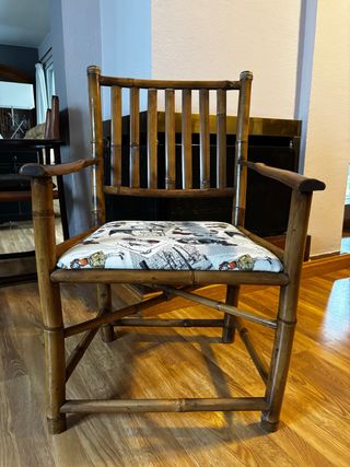 Sillón de bambú con asiento estampado