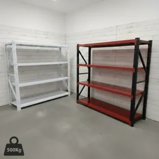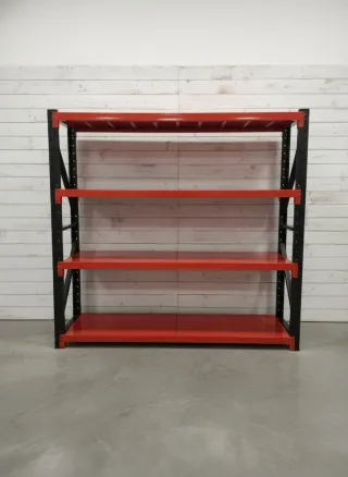 Estanterías metálicas de acero laminado. Medidas 2x2x60. - Capacidad de carga de 500kg por nivel. - Incluye las 4 baldas metálicas. - Color blanco o Negro/Rojo. - Realizamos envíos. - Son nuevas, pide presupuesto sin compromiso.