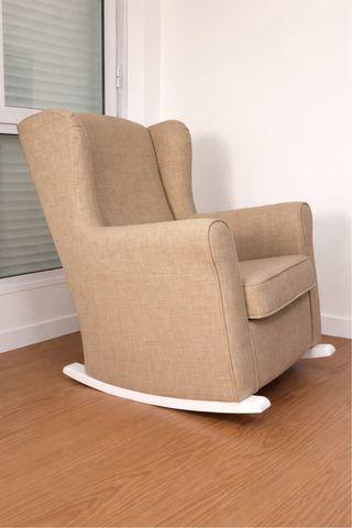 Butaca mecedora beige tela y madera