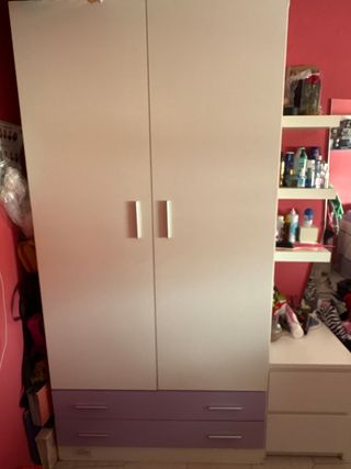 Ropero blanco 2 puertas con cajones morados