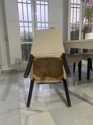 Conjunto de cuatro sillas BERGMUND de IKEA. Son cómodas y elegantes, perfectas para tu comedor. Se venden 3 pero hay 4, una hay que arreglarla de ahi su precio Se vende con 3 fundas beige - Diseño moderno. - Tapizado en tela.
