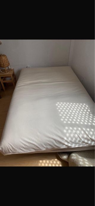 Futón cama artesanal como nuevo. Comprado en Abril de 2024, muy poco uso. (Demostrable con factura) Es muy fresquito y transpirable, regula la temperatura súper bien. Medidas: 120x190x20 Núcleo de 15 centímetros de latex natural para mayor confort y 5 de algodón natural. Firmeza alta Funda de algodón natural con cremallera que lo protege por ambas caras. Está fabricado artesanalmente con materiales 100% naturales. Reduce la carga electrostática del cuerpo y ayuda a descansar mejor.