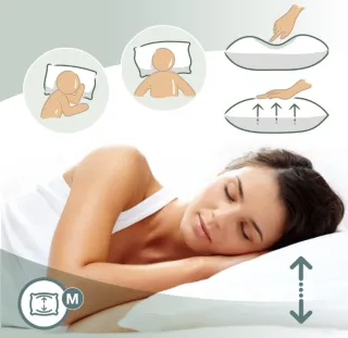 Almohada viscoelástica con funda de de aloe vera transpirable AITSSE nueva de 1,35cm. Con núcleo 100% viscoelástico de alta densidad Ideformable. Anti Bacterias y Antialergica Termorreguladora con efecto Memoria libera la presión cervical. Firmeza Media-Alta. Funda compuesta por tela Aloe Vera transpirable y suave para el tacto, desenfundable con cremallera.