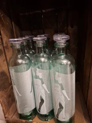 Conjunto de botellas de cristal con un diseño elegante y moderno. Perfectas para decorar o para almacenar líquidos. - Diseño con siluetas femeninas. - Tapón transparente. - Acabado liso. 3€ unidad