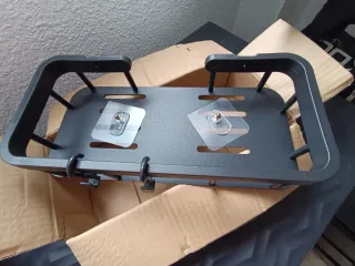 Estantería de metal negra para organizar tu baño. Incluye dos ganchos adicionales. - Diseño moderno y funcional. - Fácil de instalar con adhesivos transparentes.