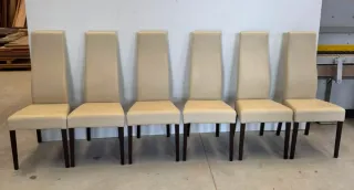 Elegantes sillas de salón con tapicería de piel. Se vende todo el conjunto. 6 uds - Patas de madera oscura. - Diseño moderno y confortable.