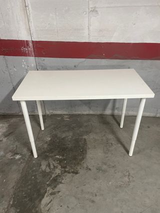 Mesa de Ikea modelo Linnmon con patas blancas. Su diseño sencillo la hace versátil para cualquier espacio. - Tablero de mesa blanco. - Patas ajustables en altura.