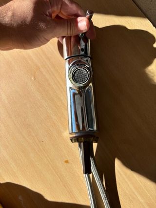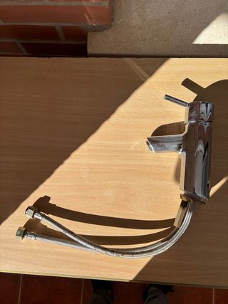 Grifo de lavabo de la marca Hansgrohe en buen estado. - Diseño moderno y funcional. - Acabado metálico brillante.