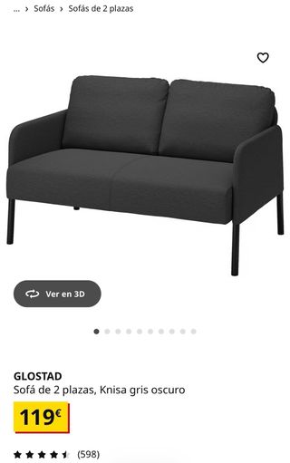 Sofá de dos plazas modelo GLOSTAD de IKEA. Diseño moderno y cómodo. - Tapicería de tela. - Patas negras.
