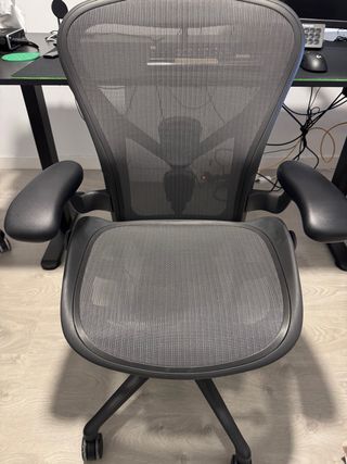 Silla ergonómica Herman Miller modelo Aeron de alta calidad. - Respaldo y asiento de malla transpirable. - Talla B.