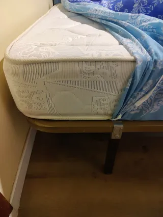 ¡Hola! Vendo este fantástico conjunto de cama de matrimonio por mudanza. Es una oportunidad inmejorable ya que está prácticamente nuevo. Se compró hace menos de un año y apenas se ha utilizado (ha estado en una habitación de invitados / ha tenido muy poco uso real). Tanto el canapé como el colchón están impecables, sin manchas ni desgaste. Es como comprarlo nuevo en tienda, pero a mitad de precio. Detalles del pack: • Medidas: 150 cm (ancho) x 190 cm (largo). Medida estándar de matrimonio. • El Canapé (Base): Base abatible de gran capacidad (como se ve en las fotos). • El Colchón: Colchón de alta calidad (tipo hotel/premium)