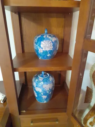 Juego 2 jarrones decorativos azules y blancogrande