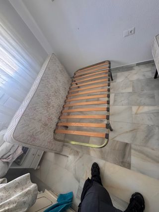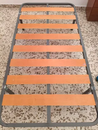 Somier de láminas de madera con patas, ideal para colchones de 80 cm. - Estructura metálica resistente. - Láminas de madera. - Patas incluidas. (18 € cada somier con sus 4 patas)