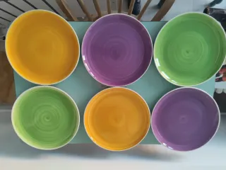 Conjunto de doce platos de cerámica de Zara Home con un diseño colorido. - Piezas con acabado esmaltado. - Hay 6 piezas Grandes (27 cm de diámetro) - Y 6 piezas pequeñas (20 cm de diámetro) Posibilidad de ampliar a estos 12