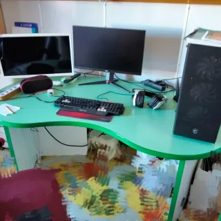 Escritorio de oficina con una combinación de materiales que le da un toque moderno. - Estructura de metal. - Superficie de madera. Medidas Profundidad 60cm Altura 71cm Ancho 120cm Es muy amplio en la imagen se ve todo lo que cabe. Entrego desmontado en torre del mar o nerja
