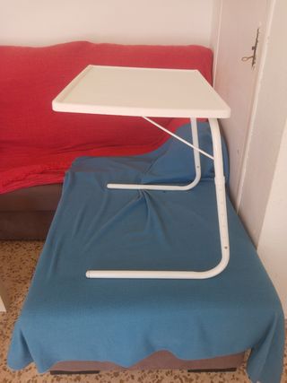 Mesa auxiliar plegable, muy práctica para tener a mano. - Superficie de plástico. - Patas de metal.