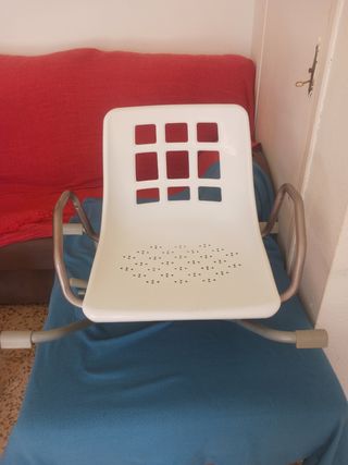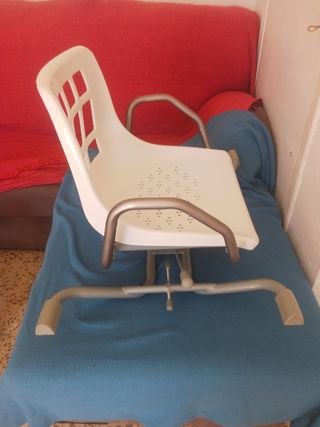 Asiento giratorio diseñado para facilitar el acceso a la bañera. - Estructura de metal y plástico. - Color blanco y gris.