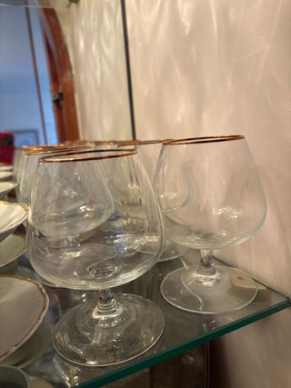 Juego de copas de cristal dorado
