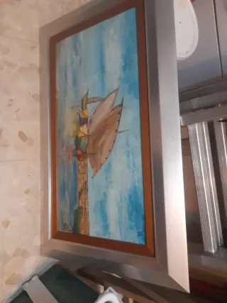 Cuadro velero azul y marrón