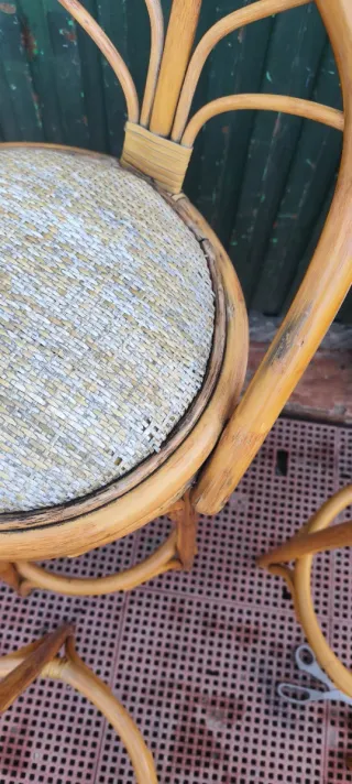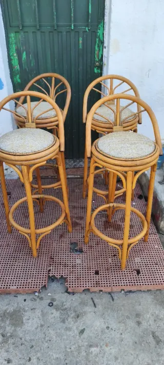 4 Taburetes Altos de Ratán y Tela
