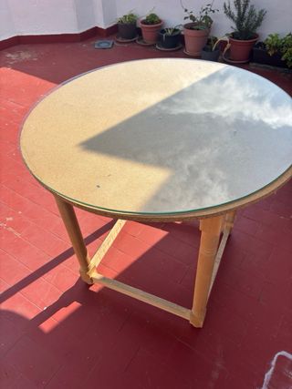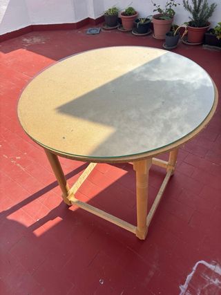 Mesa redonda de madera y cristal 80cm
